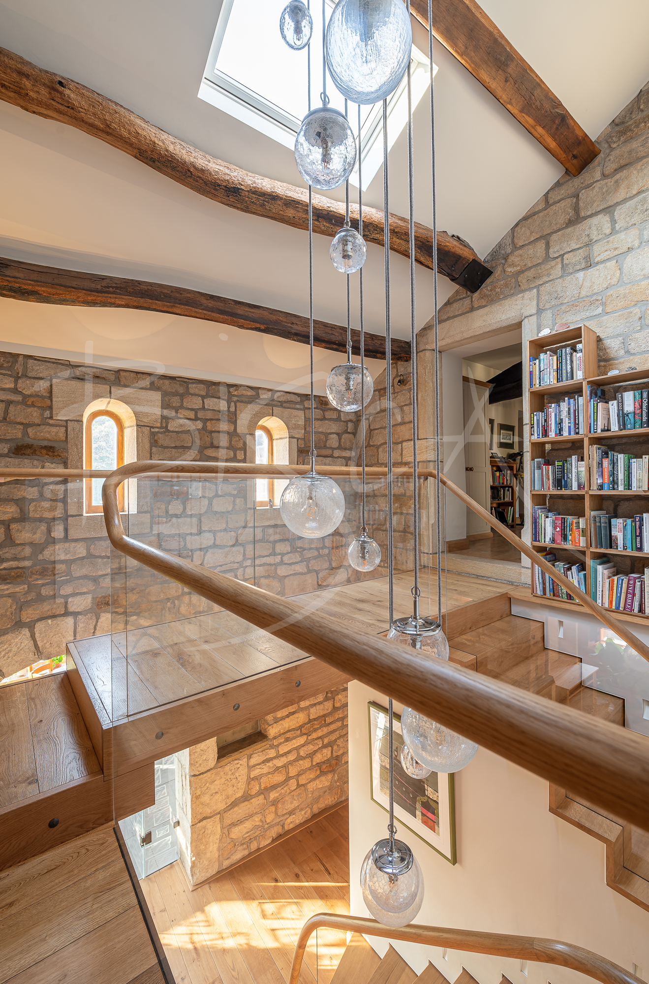 While rich in history and character, the converted barn called for a feature staircase. One which felt light, refined and contemporary – yet remained sympathetic to the building’s agricultural past. The architecture itself heavily influenced the design, with the need for a bridge-style landing to provide access to rooms on both sides of the upper floor.
